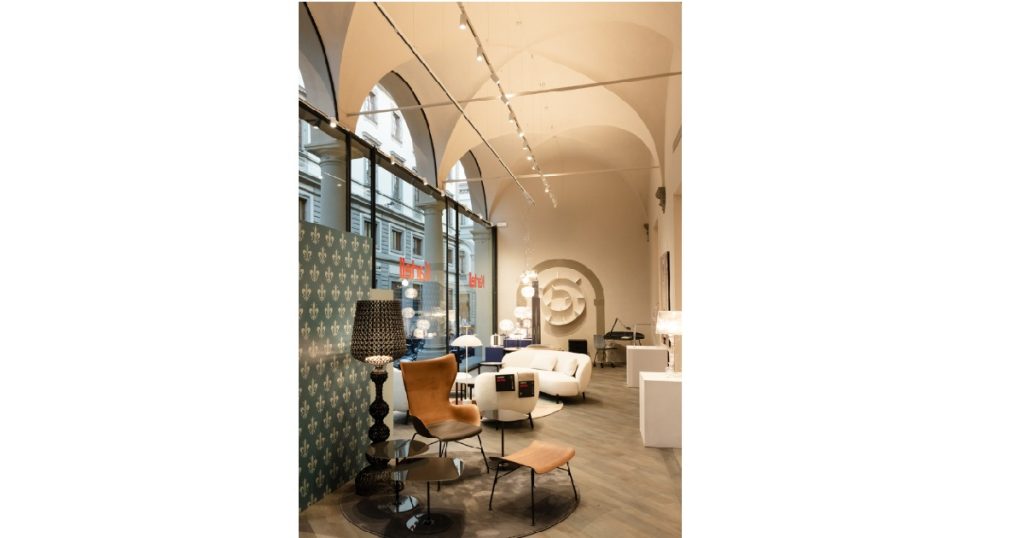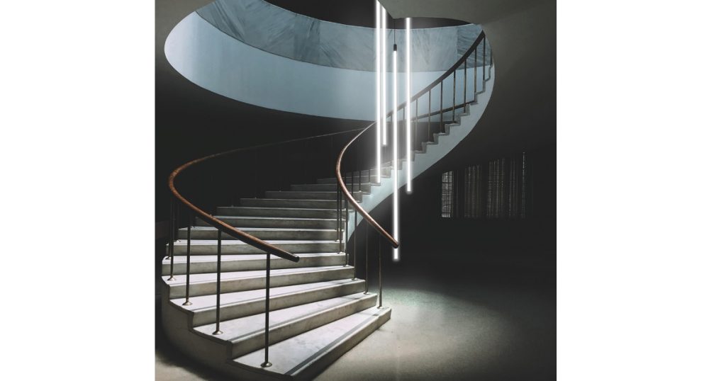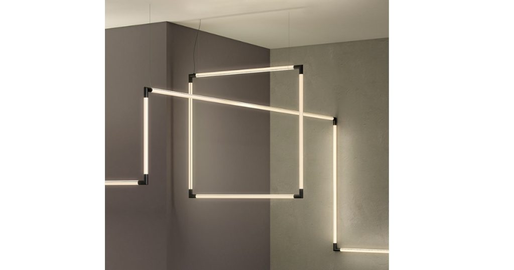 - 35 Candela – A suspended luminaire that creates vertical traces of light, ideal for double-height spaces.