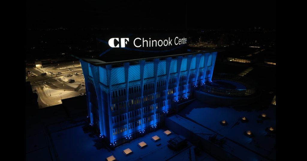 “The previous fixtures did not align with the new vision for Chinook Centre which was to theatrically illuminate the tower and provide opportunities to thematically change the look of the building to help celebrate and raise awareness for various events, holidays and goodwill causes,” said Reid.