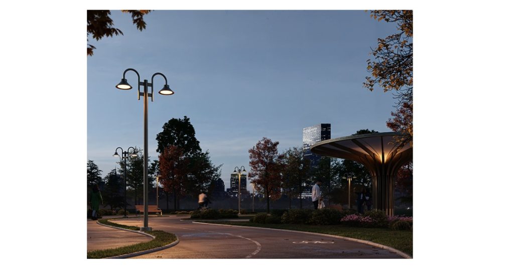 A recessed optical lens reduces glare while delivering soft, consistent, human-centric illumination. This enhances visual comfort and ensures optimal lighting performance. Three lighting distributions are available to meet a variety of requirements: symmetric, asymmetric, or pathway.