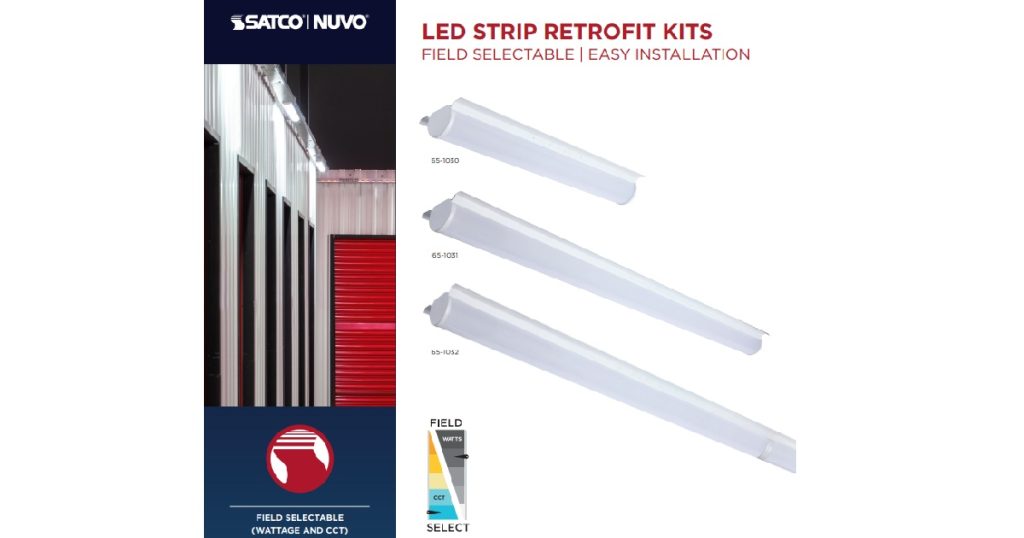 Installation for Satco’s LED Strip Retrofit Kits is fast and efficient, there’s no need to remove the lens, reducing labor time and lowering installation costs. Delivering uniform light, long life, and energy-efficient performance, these retrofit kits are ideal for warehouses, workshops, and a range of commercial and industrial spaces.